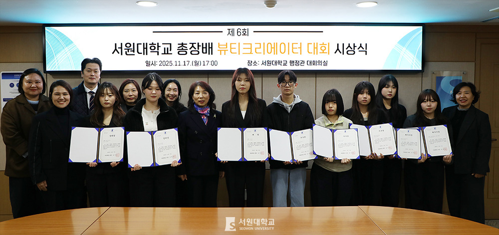 서원대학교는 17일 행정관 대회의실에서 ‘2025 제6회 서원대학교총장배 뷰티크리에이터 대회’ 시상식이 열렸다.