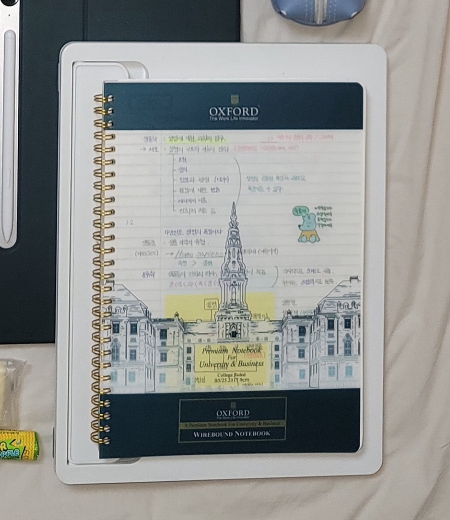 - 노트: 학과 특성상 봉사를 많이 다녀야 하는데 메모가 필요한 상황에서 유용하게 쓰이고 있어요! 노트 안에 포스트잇도 있어서 간단한 메모도 가능한 점이 좋아요.